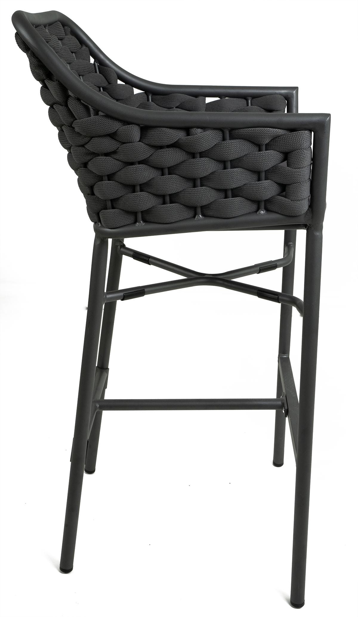 Visoka barska stolica ABET dizajnirana je za korištenje u ugostiteljstvu i na vrtu. Njena aluminijska konstrukcija u sivoj boji osigurava čvrstoću i izdržljivost, dok pletenje od užeta u sivoj boji dodaje moderan i estetski dojam. Stolica uključuje jastučić za sjedenje za dodatnu udobnost, što je čini idealnom za dugotrajno sjedenje.
