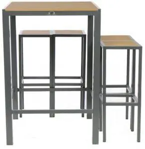 Barska stolica EVA bez naslona idealna je za ugostiteljske objekte koji trebaju funkcionalan i izdržljiv namještaj. S crnim aluminijskim okvirom i PVC letvicama u imitaciji drva, otporna je na vanjske utjecaje. Stolica je lagana i jednostavna za premještanje, a mogućnost montaže oslonca za noge omogućuje veću fleksibilnost u korištenju. Stolica ima certifikate za upotrebu EN581-1/2.