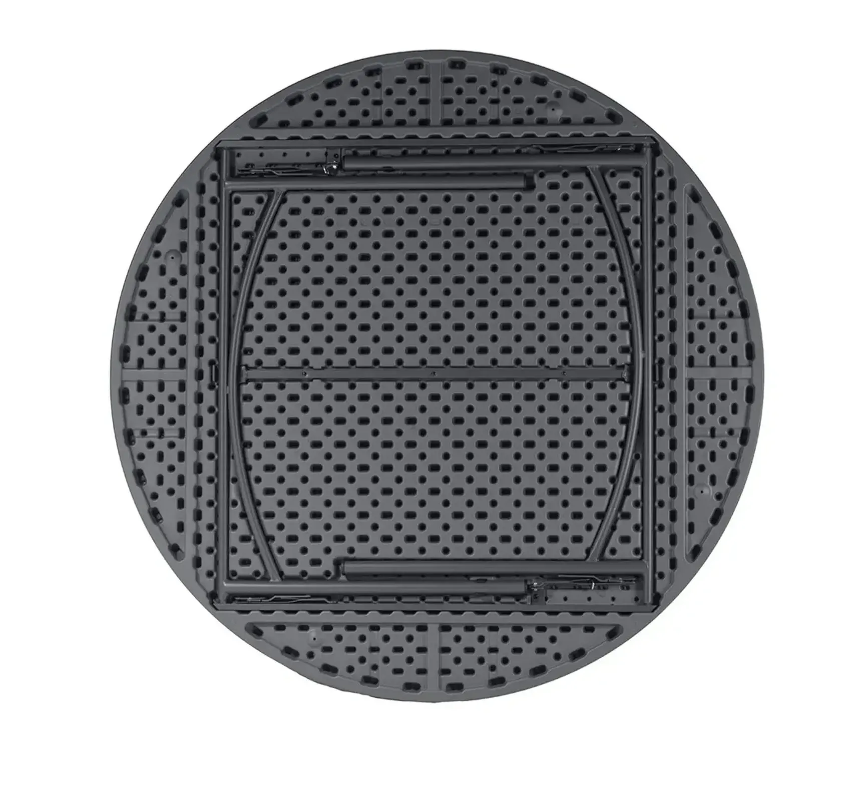 Materijal: Gornja ploča stola napravljena je od nereciklirane plastike (100% HDPE), što osigurava otpornost na udarce, vlagu i UV zrake. Metalno postolje je obrađeno premazom za zaštitu od korozije i osigurava stabilnost te mogućnost potpunog presavijanja u ploči.