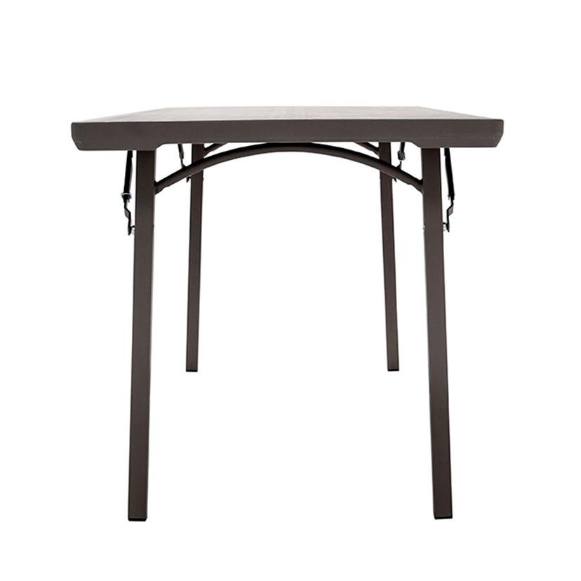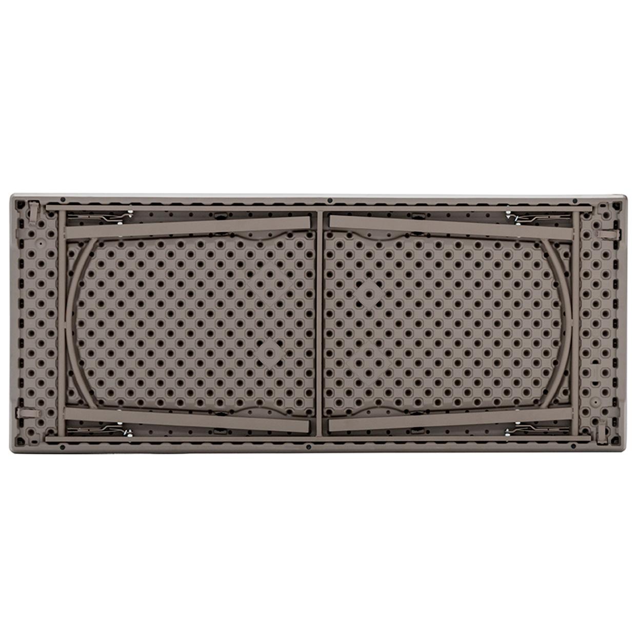 Materijal: Ploča stola izrađena je od visokogustoćnog polietilena (HDPE), što osigurava trajnost i otpornost na vremenske uvjete. Metalna podloga je obojana praškastom bojom, što povećava otpornost protiv habanja i korozije.