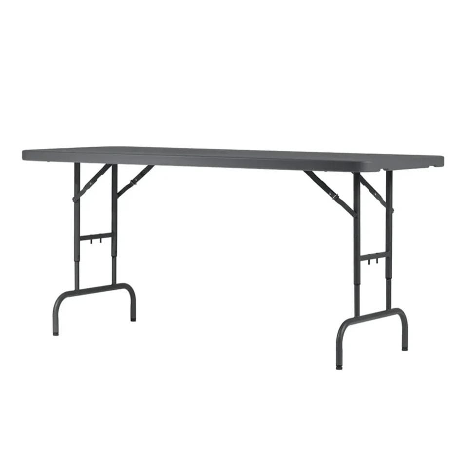 Opis: Stol Worktop180 ZOWN je dizajniran za profesionalnu upotrebu na raznim događanjima u zatvorenim i otvorenim prostorima. Svojom prilagodljivom visinom idealan je kao radni stol za zadatke koji se obavljaju stojeći, jer omogućuje podešavanje na visine 85 cm, 90 cm i 94 cm. Osim toga, može se koristiti i kao standardni stol s visinom od 74 cm. Praktičan mehanizam za prilagodbu visine omogućuje jednostavno i brzo prilagođavanje prema potrebama korisnika. Uključuje i automatski klizne sigurnosne klinove koji sprečavaju nenamjerno sklapanje.